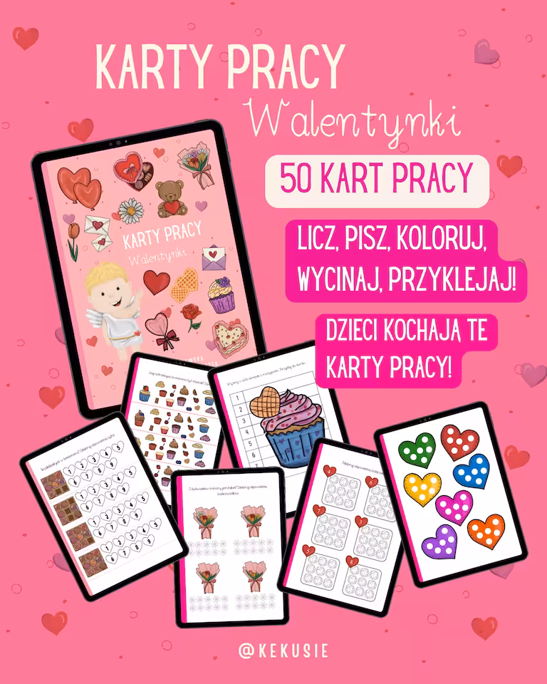 Dodatkowo otrzymujesz aż 50 WALENTYNKOWYCH KART PRACY! 🩷💘