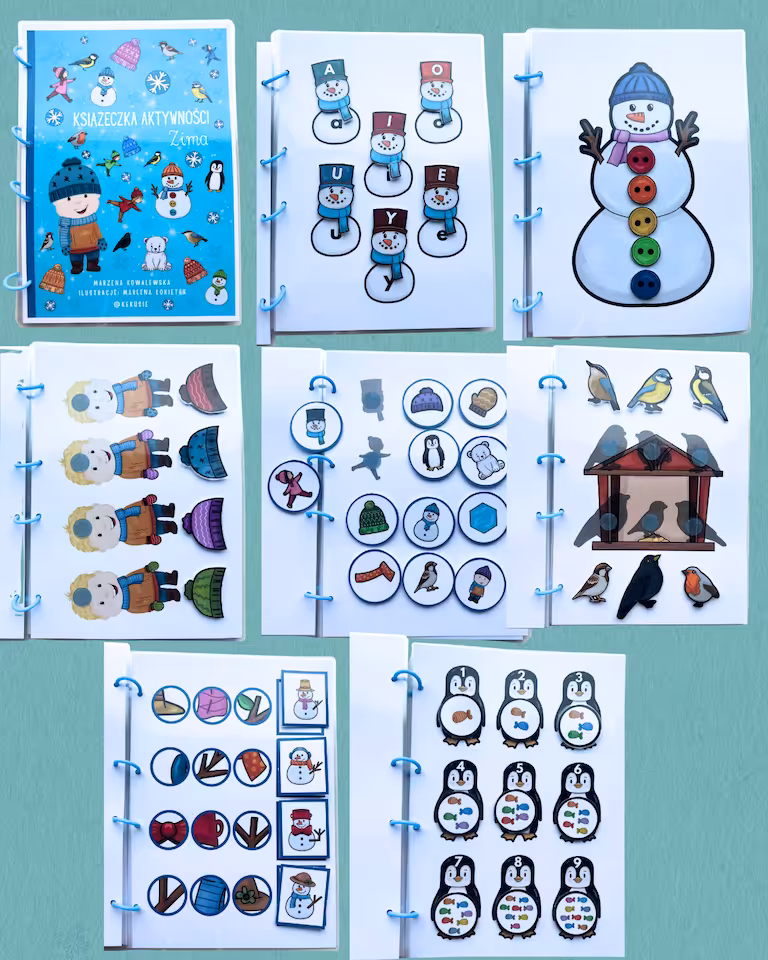 Plik do przygotowania książeczki z rzepami! Zimowa książeczka aktywności to 7 kart z zabawami!